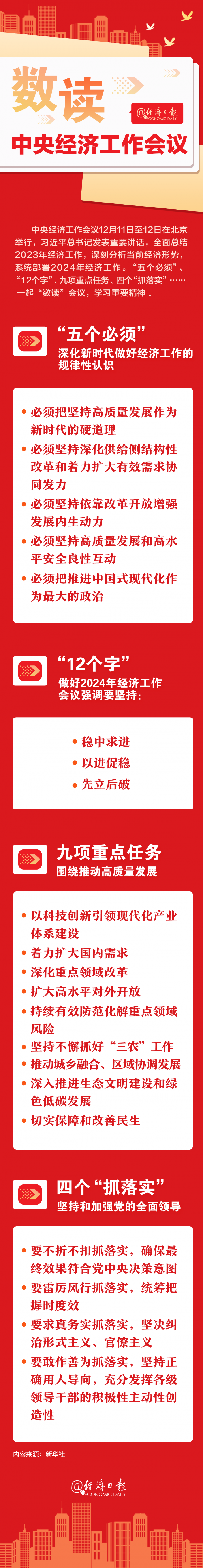 中央經(jīng)濟(jì)工作會(huì)議12月11日至12日在北京舉行。會(huì)議要求,明年要堅(jiān)持穩(wěn)中求進(jìn)、以進(jìn)促穩(wěn)、先立后破,多出有利于穩(wěn)預(yù)期、穩(wěn)增長、穩(wěn)就業(yè)的政策,在轉(zhuǎn)方式、調(diào)結(jié)構(gòu)、提質(zhì)量、增效益上積極進(jìn)取,不斷鞏固穩(wěn)中向好的基礎(chǔ)。